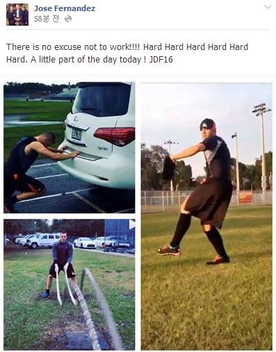 해당 사진을 살펴보면 페르난데스는 투구 연습 뿐 아니라 자동차를 뒤에서 미는 등 듯한 방법으로 훈련에 매진하고 있다.