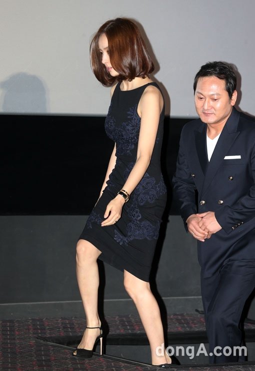 배우 한혜진(왼쪽)이 13일 오후 서울 성동구 왕십리 CGV에서 열린 영화 ‘남자가 사랑할 때’ 언론배급시사회에 참석하고 있다.