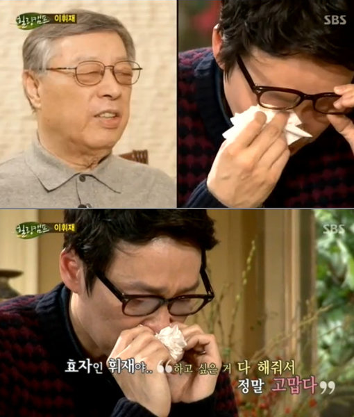 이휘재는 13일 방송된 SBS ‘힐링캠프, 기쁘지 아니한가’에서 아버지의 영상편지에 눈물을 쏟았다.
