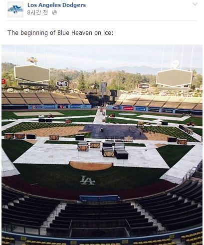 LA 다저스는 14일(이하 한국시각) 공식 페이스북을 통해 다저 스타디움 내에서 아이스하키 경기를 치르기 위한 준비 과정을 공개했다.