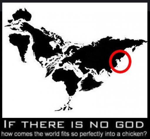 닭 모양 세계지도는 남아메리카와 호주 대륙의 닭의 머리를 이루고 북아메리카와 아프리카 대륙이 닭의 가슴과 앞다리, 아시아 대륙은 닭의 몸통을 이루고 있다.
