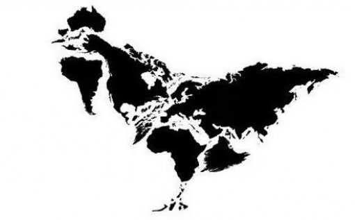 닭 모양 세계지도는 남아메리카와 호주 대륙의 닭의 머리를 이루고 북아메리카와 아프리카 대륙이 닭의 가슴과 앞다리, 아시아 대륙은 닭의 몸통을 이루고 있다.