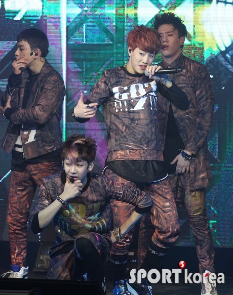 아이돌 그룹 GOT7이 15일 오후 3시 서울 성동구 성수동 대림창고에서 열린 데뷔 첫 쇼케이스에서 멋진 무대를 선사하고 있다.