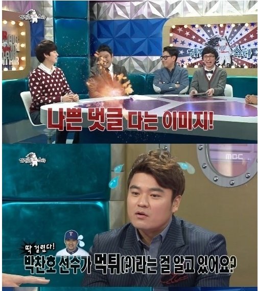 이에 김구라는 “박찬호가 텍사스와 6천만 달러에 계약한 뒤 역대 먹튀 10위 안에 들었다”고 말했고 추신수는 “혹시 내 성적이 안 좋아지면 김구라가 가장 먼저 떠오를 것 같다”고 답했다.