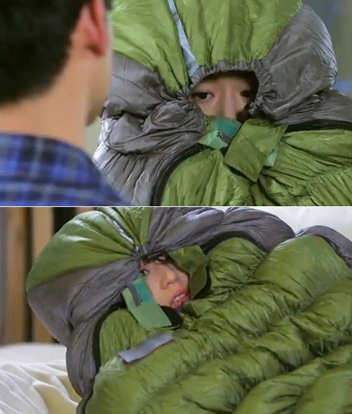 이후 김수현은 정신을 차렸고 전지현은 침낭에서 나오려 했다. 하지만 전지현은 침낭의 지퍼가 고장 나 열리지 않자 당황한 나머지 애벌레처럼 꿈틀댔다.