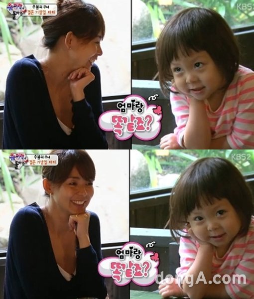 19일 방송된 KBS 2TV ‘해피선데이-슈퍼맨이 돌아왔다’에서는 엄마 야노시호의 애교를 따라하는 추사랑의 모습이 그려졌다.