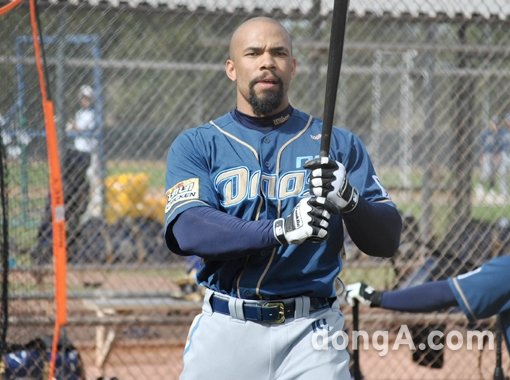 NC 다이노스의 새 외국인 타자 에릭 테임즈가 19일(현지시간) 미국 애리조나 투산의 NC 전지훈련장에서 훈련을 하고 있다.