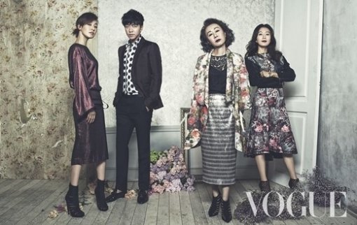 화보 속 윤여정 김희애 이미연 이승기는 화려한 의상을 입고 포즈를 취하고 있다. 윤여정이 플라워 패턴의 재킷을 걸친 채 큰언니의 포스를 풍기고 있다. 누나들 사이에서 이승기가 훈훈한 매력을 뽐내 눈길을 끈다.