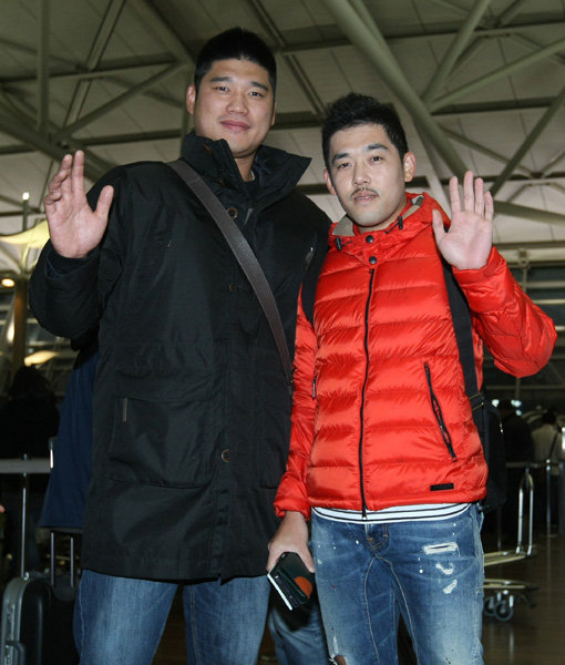 한화 이용규(오른쪽)와 최진행이 15일 인천국제공항을 통해 사이판으로 출국하고 있다. 지난해 어깨수술을 받아 재활을 위해 사이판으로 건너간 이용규는 부상 재발을 막기 위해 몸만들기에 공을 들이고 있다. 사진제공|스포츠코리아