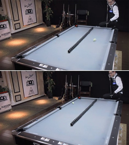 최근 온라인상에는 ‘놀라운 묘기 당구’라는 제목으로 영상이 게재됐다. 공개된 영상에는 유명 프로 당구 선수인 플로리안 쾰러의 모습이 담겨 있다. 영상 속 플로리안 쾰러는 차원이 다른 묘기를 선보이고 있다. 그는 끌어치고 당겨치고 밀어치는 방식으로 사각형의 당구 경기장을 지내하는 듯하다.