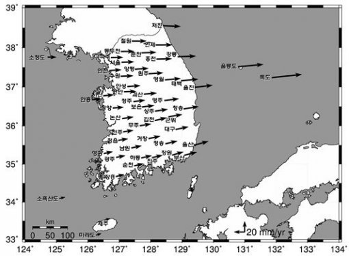 한반도가 최근 2년간 동쪽으로 이동했다는 연구 결과가 나왔다.