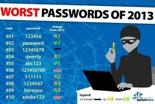 비밀번호 관리 솔루션 전문회사 ‘스플래시데이터’에 따르면 ‘2013년 최악의 비밀번호’1위는 ‘123456’으로 나타났다.