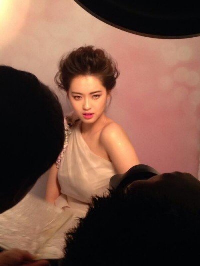 함께 공개한 사진 속 고아라는 한쪽 어깨를 드러낸 우아한 드레스를 입고 촬영에 집중하고 있다.