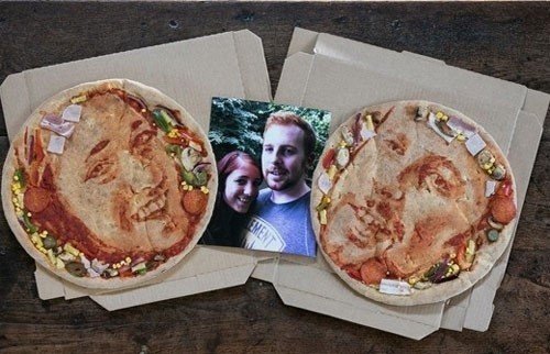공개된 ‘피자로 만든 초상화’는 13인치 크기의 피자에 부부의 얼굴이 각각 새겨져 있다. 특히 피자 옆에 놓인 이들 부부의 사진과 아주 닮은 모습이어서 더욱 놀라움을 자아낸다.