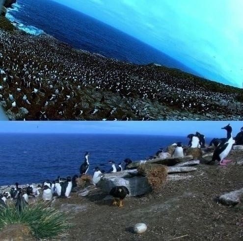 이 새는 포클랜드 락호퍼에 몰려든 수천 마리의 펭귄 떼를 공중에서 촬영해 헬리캠을 연상케 하는 모습을 연출 한 것으로 전해졌다.