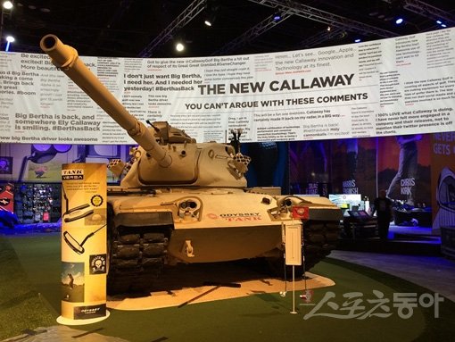 캘러웨이는 22일 미 플로리다주 올렌도에서 개막한 PGA용품쇼에서 5년만에 재출시한 빅버사 드라이버 홍보를 위해 부스에 독일군 전차(빅버사) 모형을 전시해 큰 관심을 불러 일으켰다. 주영로 기자 na1872@donga.com 트위터 @na1872