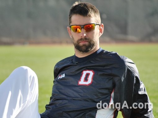 두산 베어스의 투수 더스틴 니퍼트가 23일(한국시간) 미국 애리조나 주 피오리아의 두산 스프링캠프에서 스트레칭 하고 있다.