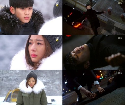 지난 22일 방송된 SBS 수목드라마 '별에서 온 그대' 11회에서는 초능력이 약해진 도민준이 이재경(신성록 분)의 비서가 모는 차를 미처 피하지 못하고 피를 흘리며 쓰러지는 모습이 방영됐다.