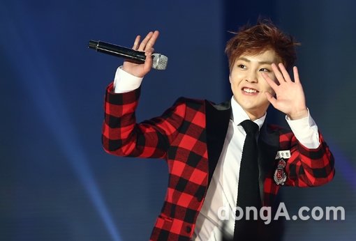 엑소의 멤버 시우민이 23일 오후 서울 송파구 잠실실내체육관에서 열린 ‘제 23회 하이원 서울가요대상’ 시상식에서 팬들에게 인사를 하고 있다.