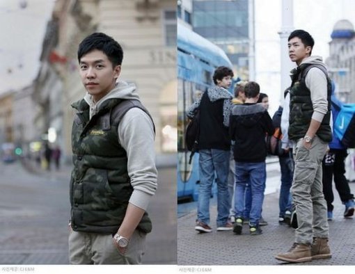 또 이승기는 베이지 컬러의 의상에 카모플라쥬 패턴의 패딩 조끼로 포인트를 더한 단정하고 세련된 스타일도 눈길을 끌고 있다.
