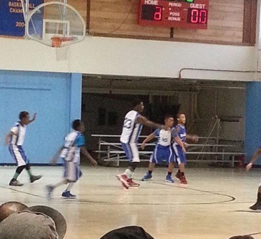 공개된 사진에는 초등학생들이 체육관에서 농구를 하는 모습이 담겨 있다. 사진 속 유난히 키가 큰 선수가 눈에 들어온다. NBA선수가 어린 학생들을 지도하는 듯한 착각을 불러 일으킨다.