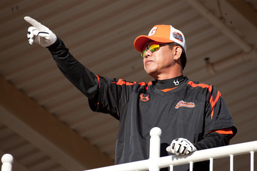 롯데 김시진 감독이 애리조나에서 선수들의 훈련을 지휘하고 있다. 김 감독은 사이판 훈련상황에 대해서는 수시로 보고 받고 있다. 사진제공|롯데 자이언츠
