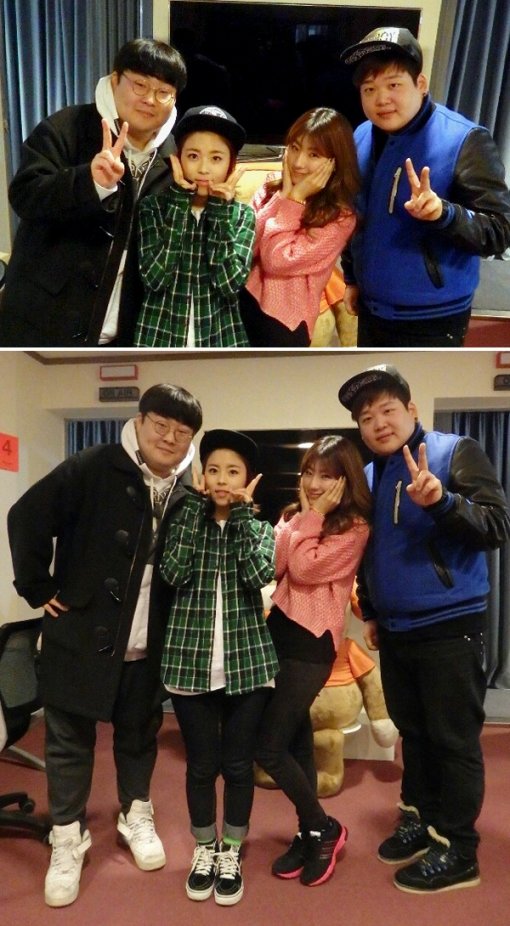 특히 투빅은 알려진 대로 둘이 합쳐 200kg을 넘는 묵직한 체격이고, 타이니지는 평균키 154cm의 아담한 걸그룹으로 화제를 모았던 만큼 극과 극을 이룬 두 팀의 인증샷은 공개되자마자 화제이다.