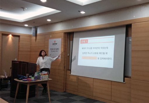 이번 강의는 해외 직구를 처음 해 보는 초보자들을 위한 기초 내용으로 구성됐다. 배송 대행과 주소 선택, 물품 검색, 주소 기입, 결제하기, 배송신청서 작성 등 해외 직구를 하는 순서를 그대로 보여주었다. 구매하는 상품에 따라 부피무게 세금을 줄이려면 각각 어떤 배송대행지를 선택해야 하는지, 해외 쇼핑몰 상품 구매를 마치고 배송대행 신청서를 늦게 작성하면 입고가 지연될 수 있는 등 중요한 팁도 제공했다. 또한 PPT 자료를 제공해, 강의를 들은 사람들이 집에 가서 해외 직구를 똑같이 따라할 수 있도록 했다.