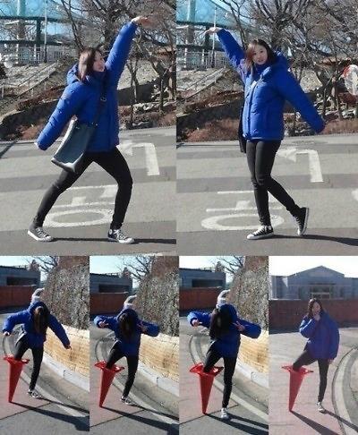 고예림은 최근 자신의 페이스북을 통해 근황을 공개했다. 사진 속 고예림은 거리에 세워진 고깔에 다리를 끼우고 장난스러운 포즈를 취하고 있다.