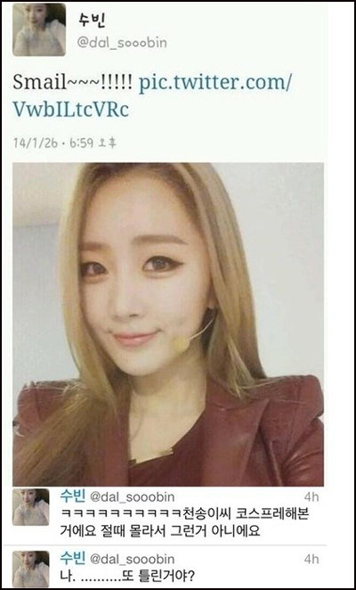 이에 수빈은 "천송이 코스프레 해본 거예요. 절때 몰라서 그런 거 아니예요"라고 해명했다.