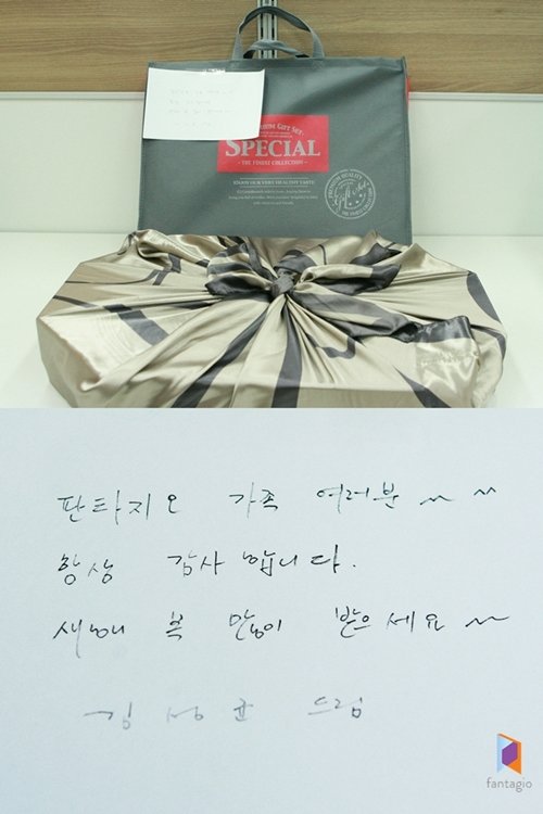 김성균이 직접 쓴 손편지에는 "판타지오 가족 여러분~ 항상 감사합니다. 새해 복 많이 받으세요"라고 쓰여 있다.