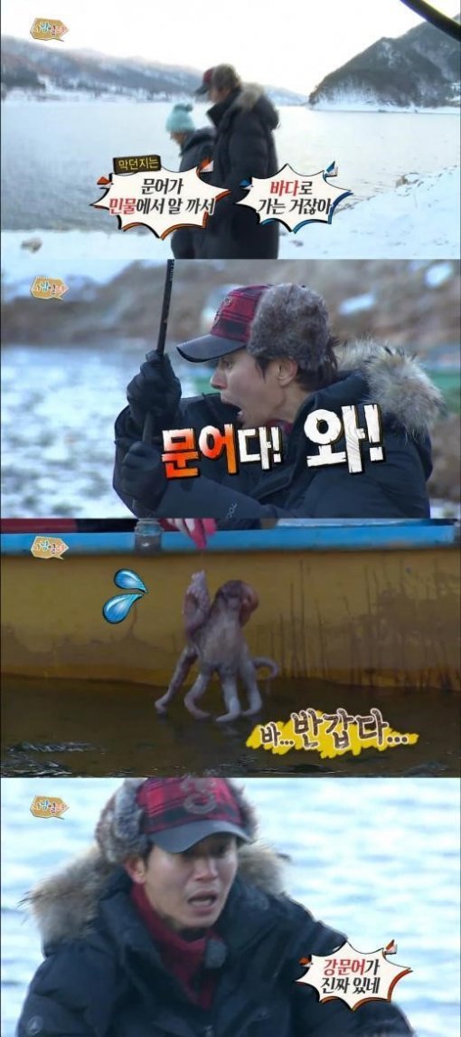 한껏 기세등등해진 김민종을 보며 낄낄거리던 형제들은 이번에는 강문어를 끼웠고, 김민종은 민물에서 강문어를 잡자 천진난만하게 기뻐했다.
