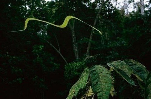 주로 동남아 밀림에서 포착되는 이 뱀은 나무 사이를 날아다니는 것이 특징이다. 신체 구조상 다리가 없음에도 비행이 가능해 놀라움을 자아낸다.