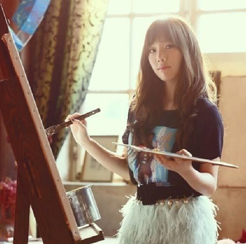 걸그룹 소녀시대의 멤버 태연이 그림을 그리는 사진이 공개돼 화제다.