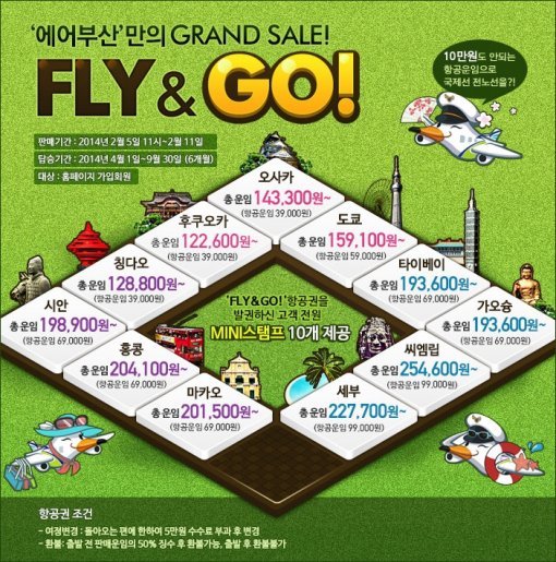 에어부산은 5일 “11일까지 ‘그랜드 세일 FLY&GO’ 이벤트를 진행한다”고 공지했다.