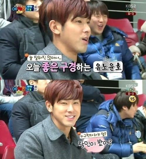 동방신기 유노윤호가 KBS 2TV ‘우리동네 예체능’ 관중석에서 포착됐다.