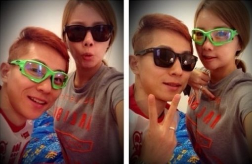 공개된 사진 속 안현수와 여자친구 우나리 씨는 서로의 선글라스를 바꿔 착용하며 다정한 포즈를 취하고 있다.