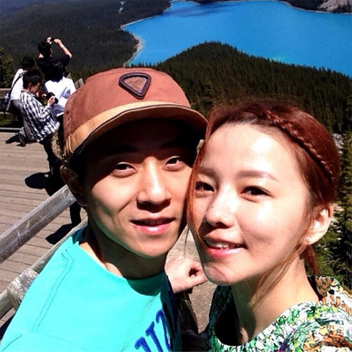 공개된 사진에는 안현수가 여자친구 우나리 씨와 함께 사진을 찍은 모습이 담겨 있다. 두 사람 뒤로는 캐나다 캘거리의 페이토 호수가 아름답게 펼쳐져 있다.