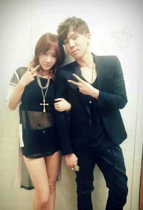 사진 속 소유와 정기고는 음악 방송 대기실에서 팔짱을 껴고 다정한 포즈를 취하고 있다.