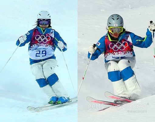 서정화와 서지원이 8일(한국시간) 러시아 로사 쿠토르 익스트림 파크에서 열린 2014 소치 동계올림픽 프리스타일스키 여자 모굴 2차 예선 경기를 치르고 있다. 사진=GettyImages/멀티비츠
