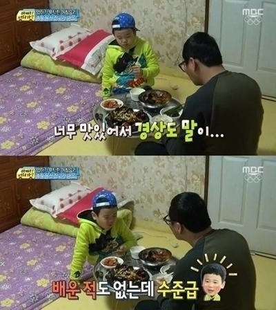 윤후는 9일 방송된 MBC ‘일밤-아빠 어디가2’에서 윤민수와 저녁을 먹다가 “살아있네”라고 경상도 사투리를 선보였다.