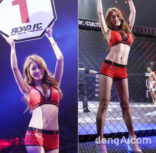 박시현은 9일 오후 서울 송파구 올림픽공원 올림픽홀에서 열린 로드FC 014 대회에서 로드걸로 등장해 경기 시작을 알렸다. 그는 타이트한 레드 초미니 의상을 입고 우월한 몸매를 뽐냈다.