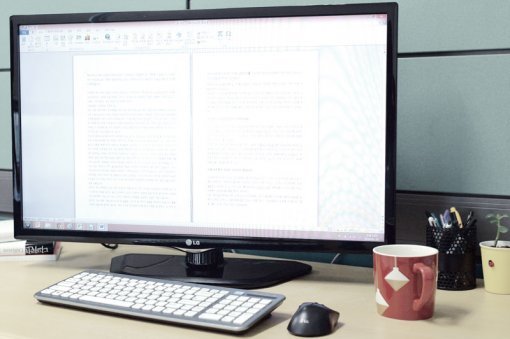 필자는 업무 시 22인치 모니터 2개를 사용한다. 그중 하나를 LG전자 32인치 모니터로 교체했더니 모니터 3개를 연결한 듯한 느낌을 받았다. 주 모니터로 사용한 32인치 제품의 해상도는 풀HD(1,920x1,080)로 일반 20인치 중반의 모니터와 비슷하지만, 화면 크기가 상대적으로 크다. 때문에 텍스트나 사진을 소형 모니터보다 더 크게 볼 수 있다. 이 장점은 워드프로세서로 문서를 작성하거나 PDF 파일을 읽을 때도 두드러진다. 페이지 비율을 줄이더라도 눈으로 볼 수 있기 때문에 한 화면에 2페이지씩 표시하더라도 소형 모니터보다 가독성이 높다.