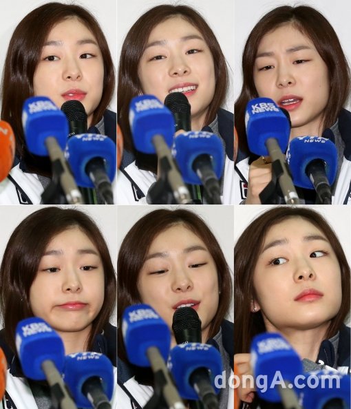 피겨여왕 김연아가 12일 오전 인천국제공항 출국에 앞서 갖은 기자회견에서 다양한 표정을 짓고 있다.