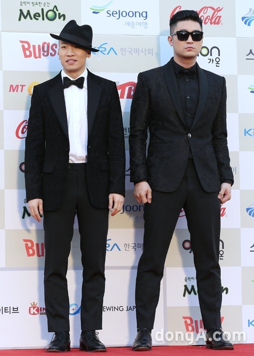 다이나믹 듀오가 12일 오후 서울 송파구 올림픽공원 체조경기장에서 열린 제3회 가온차트 K-POP 어워드 레드카펫 행사에서 포토타임을 하고 있다.