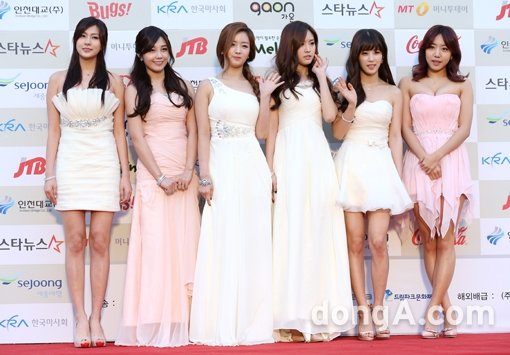 걸그룹 에이핑크가 12일 오후 서울 송파구 올림픽공원 체조경기장에서 열린 제3회 가온차트 K-POP 어워드 레드카펫 행사에서 포토타임을 하고 있다.