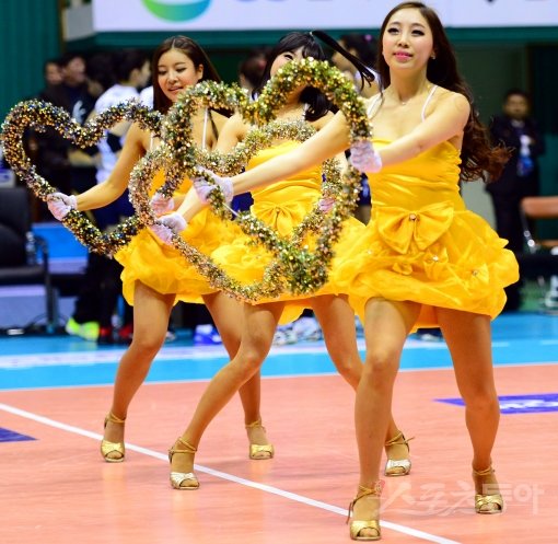12일 오후 평택 이충문화체육관센터에서 열린 프로배구 V-리그 GS칼텍스와 IBK기업은행의 경기에서 치어리더가 공연을 펼치고 있다.