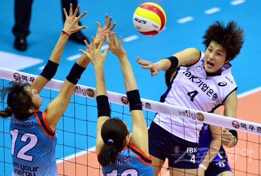 1 세트. 베띠와 이효희의 맞대결 같았다. GS는 베띠(14득점)에 화력을 집중시켰다. 기업은행 세터 이효희는 팀 공격수를 모두 이용했다. 토털배구가 25-21로 이겼다. 2세트 유효블로킹 대결이 팽팽했다. 20-17에서 파란이 일었다. GS가 7연속 득점으로 세트포인트를 만들자 기업은행은 5연속 득점으로 뒤집었다. 25-25에서 기업은행은 베띠의 서브아웃과 박정아의 퀵오픈으로 세트를 따냈다. 15득점의 카리나가 세트의 주인공이었다. 3세트에서도 기업은행은 16-16에서 김희진의 서브에이스 2개 포함 6연속 득점을 하며 1위 팀의 위력을 과시했다. 카리나는 25득점했고, 박정아와 김희진도 22득점을 합작했다.