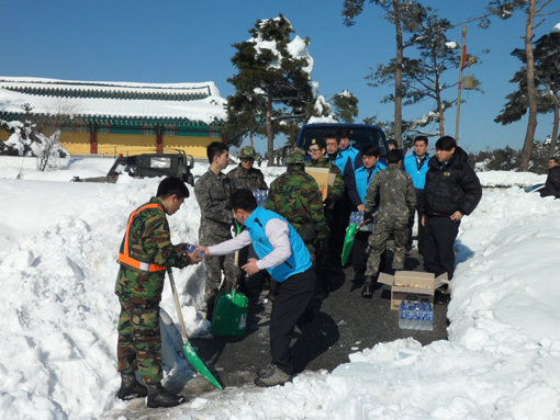 12일 영동 폭설피해지역 제설작업에 참여하는 군 장병,경찰 및 자원봉사자들에게 음료와 간식을 제공했다. 또한 하이트진로 강릉지점 직원들은 피해복구 지역을 방문해 계열사 하이트진로음료의 먹는샘물 ‘석수’, ‘퓨리스’, 기능성 음료인 ‘홍삼수’ 1만병과 간식을 전달했다. 피해지역 제설작업에도 나선다. 하이트진로 본사와 강원도 지역 지점 임직원들로 구조단을 구성해 피해지역 재설작업에도 참여할 예정이다.