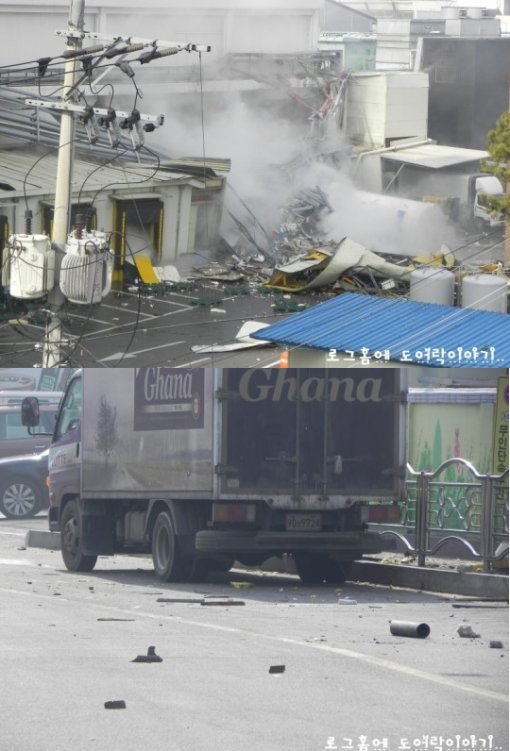 한편 사고 현장 근처에 있던 한 누리꾼은 자신의 블로그 '로그홈에 도어록 이야기'에 "가게에 있는 갑자기 펑하는 굉음이 들렸다"며 "무엇이 폭발했는지 알 수는 없지만 암모니아 같은 아주 독한 냄새가 났다"고 당시 상황을 전했다.